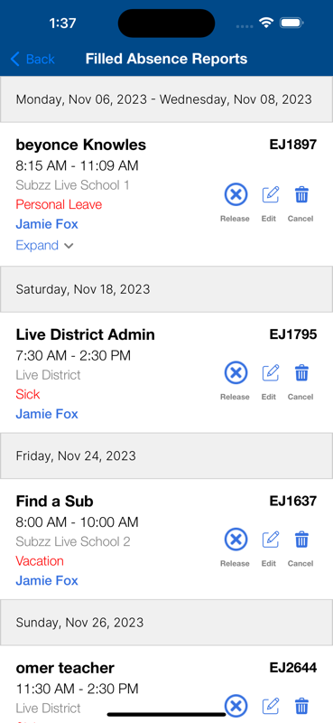 InstaSub 行動應用程式提供了一種快速、簡單的方式來查看和接受工作、發布缺勤資訊、請求替補以及管理缺勤。
