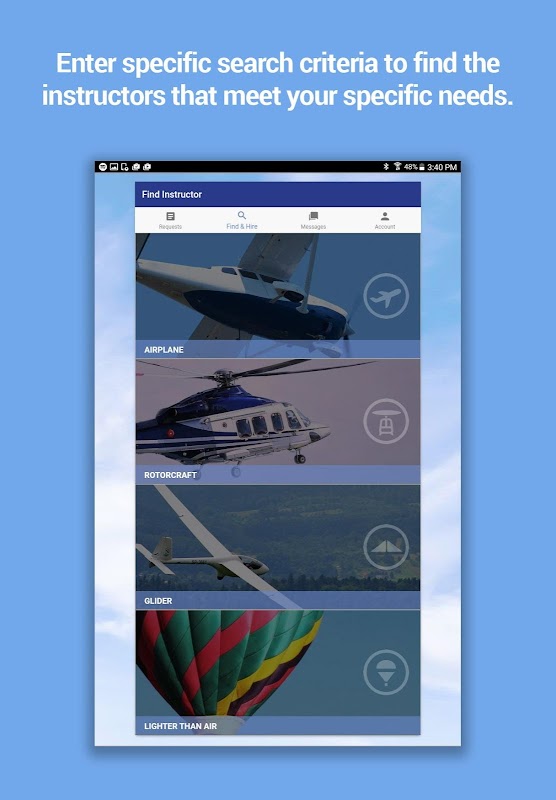 飛行員可以免費搜索和比較當地飛行教官或發布他們的培訓需求。所有飛行教官都是全國飛行教員協會的成員,確保高水平的專業性和對每個飛行員獨特學習風格的承諾。搜索固定翼,旋翼,滑翔機,無人機和輕於空氣類別的講師;是否尋求初始培訓,額外評級,航班評論或更具體的內容。查看詳細的航班指導員資料和評論。輕鬆溝通並預訂下一課。培訓完成後,發送安全付款並讓您自己的教師審核您的體驗。