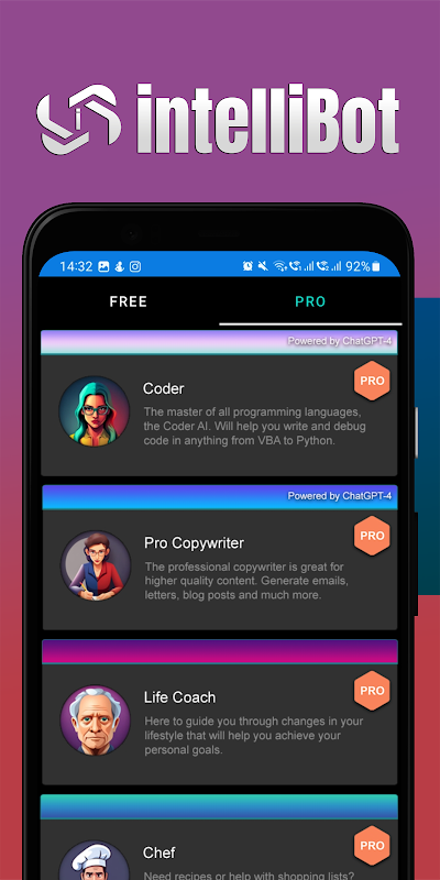 介紹 intelliBot,一款由 OpenAI 的 ChatGPT 提供支持的創新移動應用程序!借助 intelliBot,您可以體驗對話式 AI 的未來,探索自然語言處理的多種可能性。