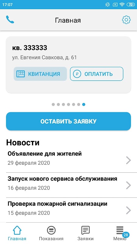 • Отправлять заявки в управляющую компанию и полностью контролировать процесс их обработки