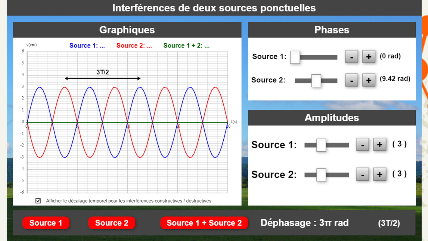 Il est possible de modifier la phase de la source 1 et 2 ou encore de modifier l’amplitude de la source 1 et 2.