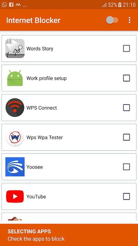 從列表中選擇要阻止的應用程序並激活上欄中的開關。