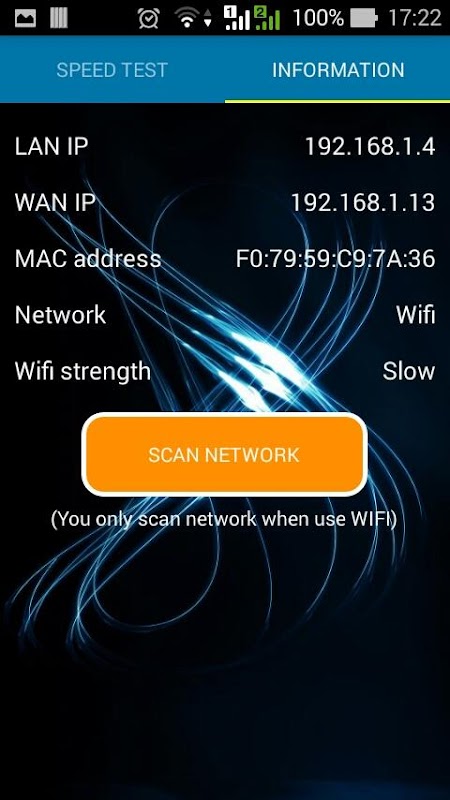 - 有關網絡(LAN IP,廣域網IP,MAC地址,無線網絡的力量,移動數據的力量,你的互聯網服務提供商的信息)查看信息