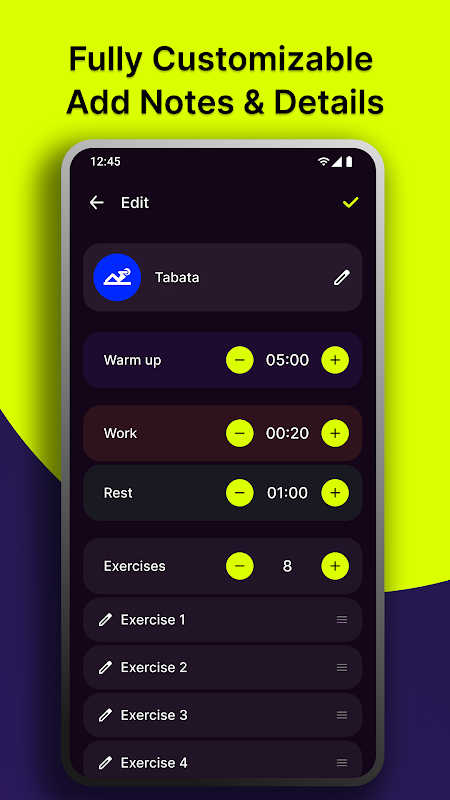 許多使用者都喜歡這款間歇訓練應用程式能夠輕鬆適應他們的個人需求。無需猶豫—只需打開應用,微調您的訓練計劃或選擇預設的訓練方案,即可開始。所有功能都設計得靈活直觀,讓您可以建立真正符合自身目標的訓練計畫。您的設置,您的節奏——每一步都盡在掌控。