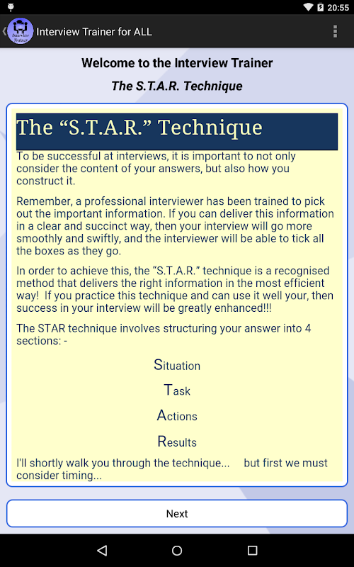 Interview questions, hints and tips PLUS the STAR Timer interview trainer.