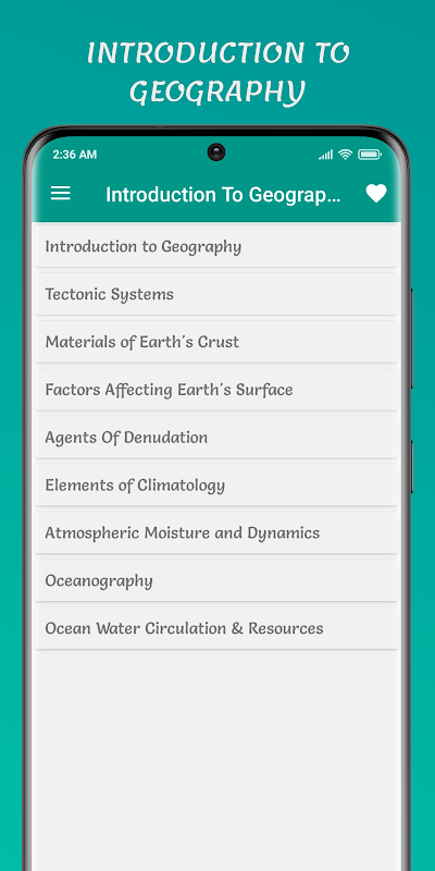 這個應用程序包含有關地理的各種主題,其中一些是: