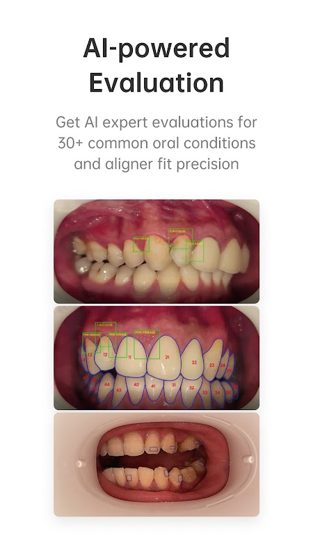 在家拍攝口腔影像,讓您的牙醫看到您的每一步進展。人工智慧分析可幫助您的牙醫追蹤您的矯正進度以及整體口腔衛生和健康狀況,使整個過程更加準確和高效。