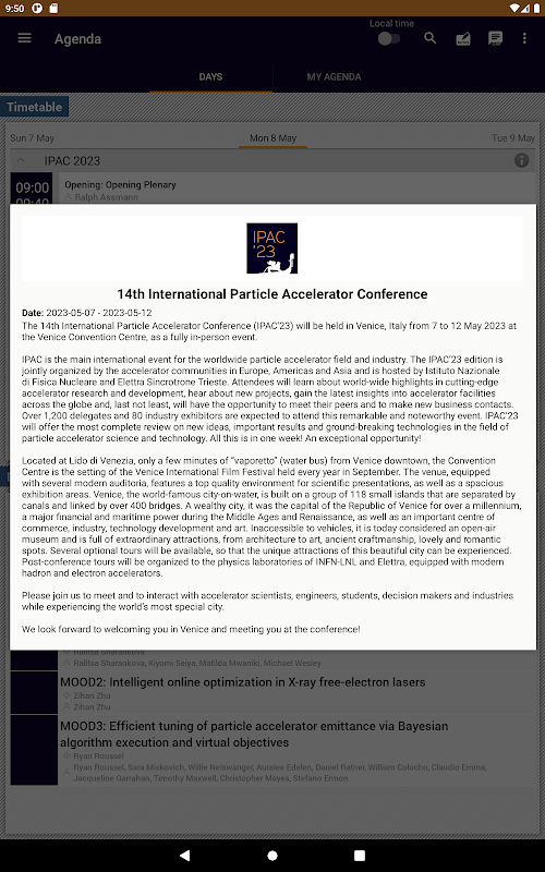 IPAC23 應用程序提供有關會議科學計劃的最新信息;行業會議;作者;物流;參展商和讚助商。