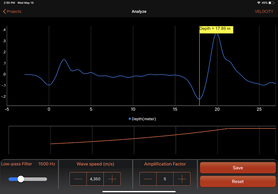 iPad使用最先進的移動計算能力進行數據收集,分析和報告。使用藍牙4技術將測量結果傳輸到帶大屏幕的Apple iPad。在上層建築施工之前,岩土工程師和NDT專家可以使用iPile結果評估新建或安裝的深基礎的質量和完整性;此外,iPile可以幫助法醫工程師和狀態評估專家評估現有樁的完整性和未知長度。