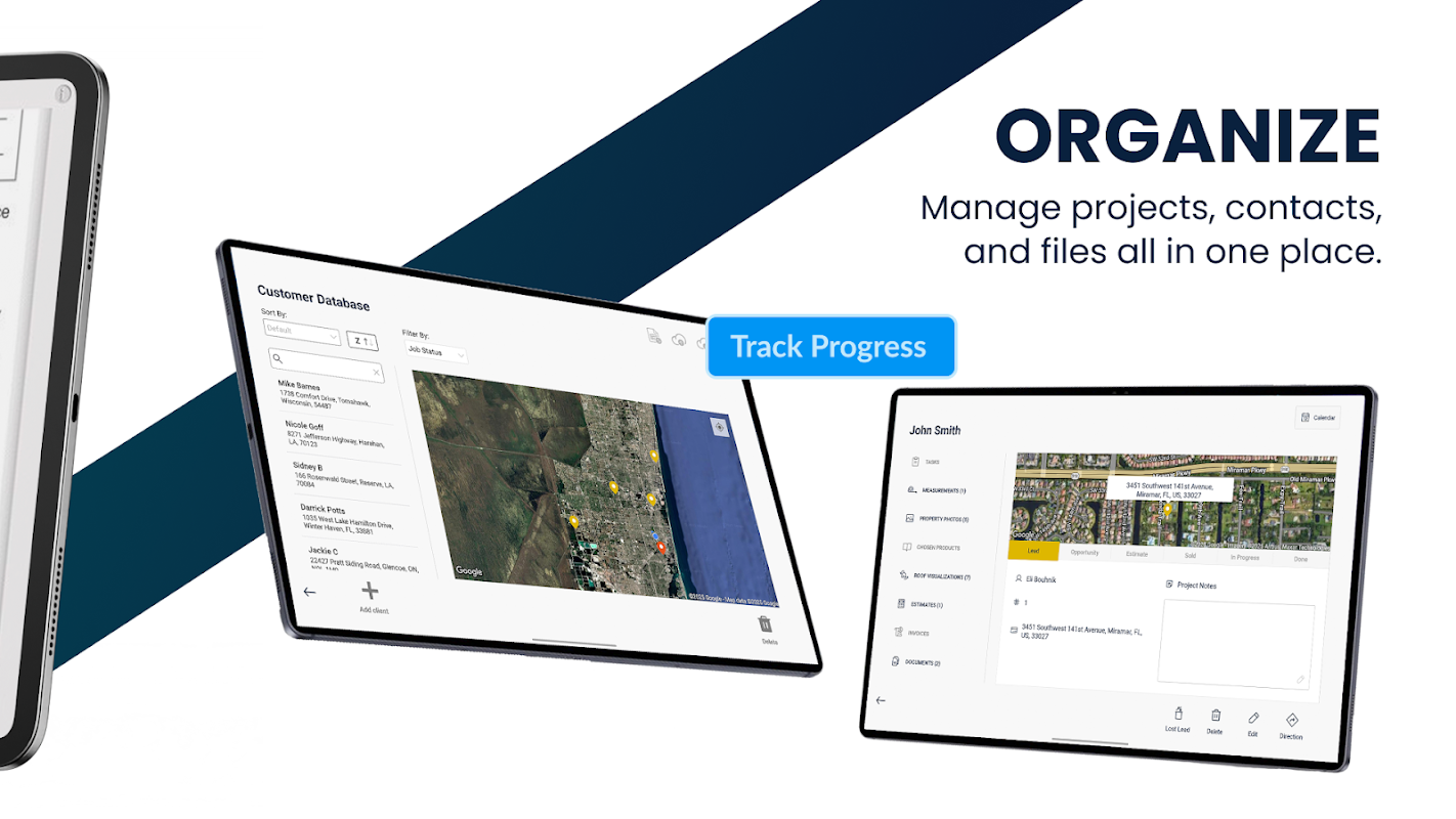 • 使用我們先進的 iRoofing Simulator 功能,使用客戶現有屋頂的照片以數字方式渲染全新的屋頂裝置——當場向客戶展示他們的新屋頂的樣子!