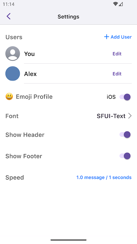 iTextStories 允許您像任何消息應用程序一樣創建文本對話,只不過您可以在左側/右側之間切換以自己編寫整個故事。文字故事可以導出為高質量視頻