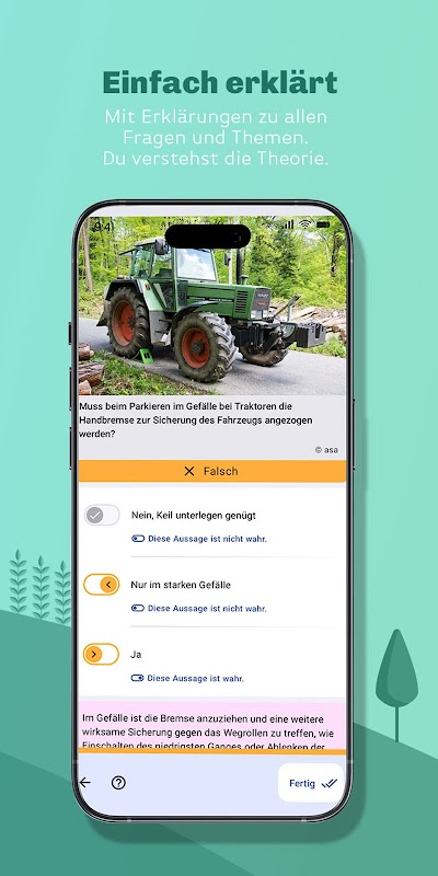 通過 ASA 2025 中的所有官方拖拉機理論考試題,學習 F/G 類拖拉機理論考試,並獲得拖拉機駕駛執照。