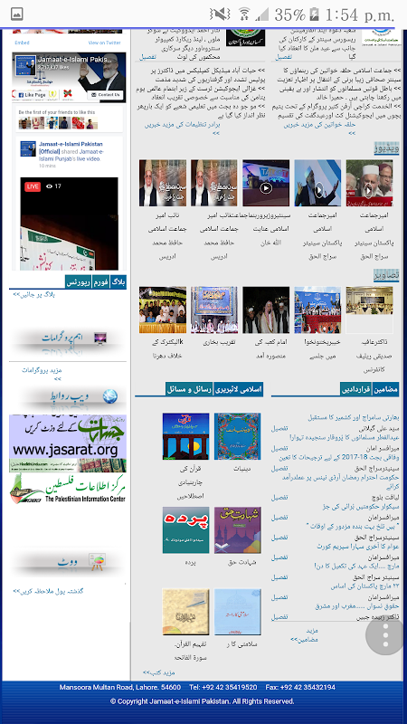 Jamaat-e-Islami (Urdu: جماعتِ اسلامی, JI) is a social conservative, and Islamist political party and this app is designed for Jamaat-e-Islami Pakistan, Jamaats latest news updates, Jamaat songs and all other Jamaat-e-Islami Pakistan belongings. Its objective is to make Pakistan an Islamic state, governed by Sharia law, through a gradual legal, and political process. JI strongly opposes capitalism, communism, liberalism, socialism and secularism as well as economic practices such as offering bank interest. JI is a vanguard party: its members form an elite with "affiliates" and then "sympathizers" beneath them. The party leader is called an ameer. Although it does not have a large popular following, the party is quite influential and considered one of the major Islamic movements in Pakistan, along with Deobandi and Barelvi.