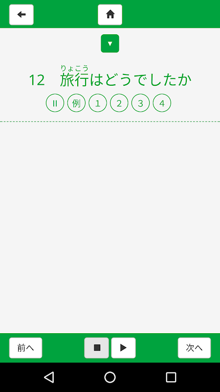 本應用程式包含教科書「文法まとめrisuningu初級1―日本語初級1大地準摳―」的聽力理解練習。