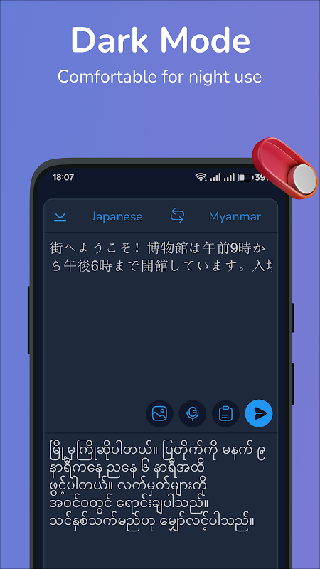 - 閃電般的快速翻譯:即使是複雜的段落也能即時翻譯,從日語到緬甸語,從緬甸語到日語