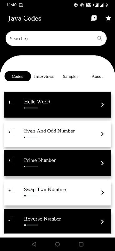 - Three Modules : Codes, Interviews and Samples for better learning.