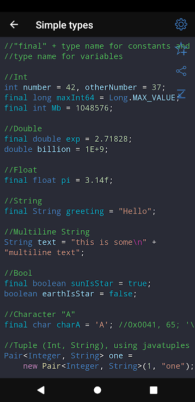 • 應用程式中的所有範例均可離線使用。當網路連線不可用時可以使用該應用程式。