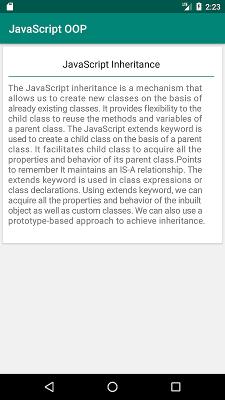 This app contained the basic knowledge of javascripts OOP .By using this app you can learn about javascripts OOP ..It helps you any interview session.this is very basic app later we update our new features for this app.