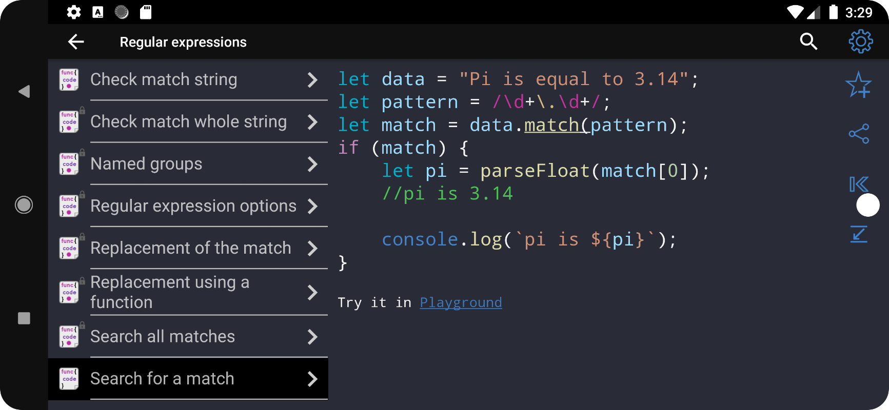 • 應用程式中的所有範例均可離線使用。當網路連線不可用時可以使用該應用程式。
