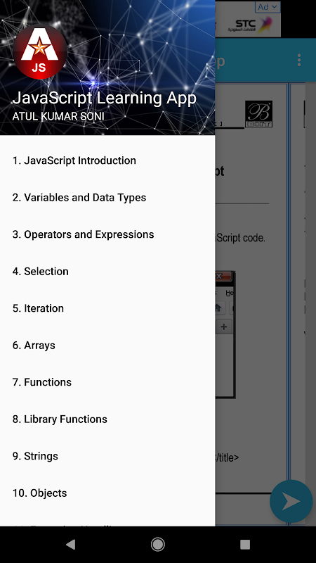 這個JavaScript培訓應用程序將通過簡單的示例幫助您學習JavaScript客戶端腳本語言。此JavaScript培訓應用程序對所有類型的學習者都非常有用。我們以簡單的方式設計了這個JavaScript培訓應用程序,以便每個人都能輕鬆理解。這個JavaScript培訓應用程序適合初學者通過簡單而合適的示例學習基本JavaScript和高級JavaScript。