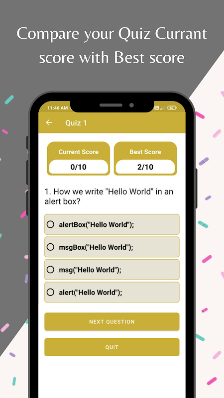 透過整合的 MCQ 和問答部分來測試您的知識,加強您的學習並追蹤您的進度。享受專為最佳學習而設計的使用者友善介面,讓掌握 JavaScript 變得比以往更容易。