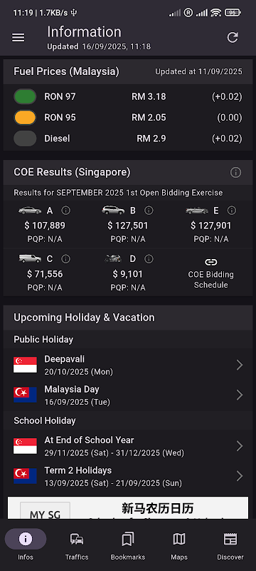 即時 SG—JB 交通攝影機、行程時間、天氣、燃料和匯率。