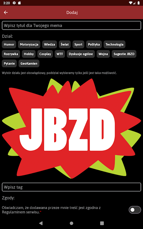 如果您需要了解更多信息,您可能需要了解角馬是什麼。 jbzd 是我們歷史名稱的縮寫:通俗地稱為 dzida 或小型 dzidka。據 Gemius 稱,Dzidka 是波蘭最大的娛樂網站。如果您想成為訪客,則必須擁有訪客應用程式。管理員在這裡準備了什麼?