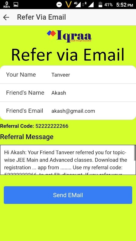 這給出了一個很好的機會,在JEE主要和JEE先進的學生在他需要的時候,要求對他所選擇的任何主題類。該應用程序提供了物理,化學和數學的主題列表。學生可以選擇任意數量的主題。該應用程序還列出了與Iqraa教師的時隙可用性。學生們選擇任意數量的根據個人的可用性和偏好插槽。 Iqraa將所有學生評估每個話題的請求數量,編制課程表,並告知學生。接受後,類將根據調度來進行。對於烏代布爾以外的學生,課程將現場直播通過Skype進行和Udaipurites,課程將在Iqraa,456 Bhupalpura,近夏斯特里圈,烏代浦爾進行。聯繫電話:9001784209,8005844184