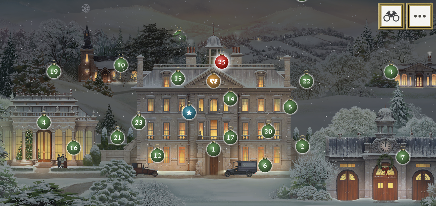 傳統的降臨節日曆是印刷在紙板上的聖誕節場景,上面有小紙窗——一個代表降臨節的每一天——打開後可以顯示更多的聖誕節場景,這樣用戶就可以計算聖誕節的天數。當然,我們的數位降臨節日曆更加令人興奮,因為主要場景和每日驚喜都隨著音樂和動畫而變得生動起來!