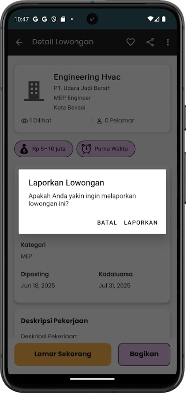招募人員或雇主可以直接在應用程式內註冊並建立職缺。職位發布表單包含職位名稱、描述、資格、公司、薪資、截止日期、工作地點等信息,並會立即存儲在 Firebase Firestore 中。