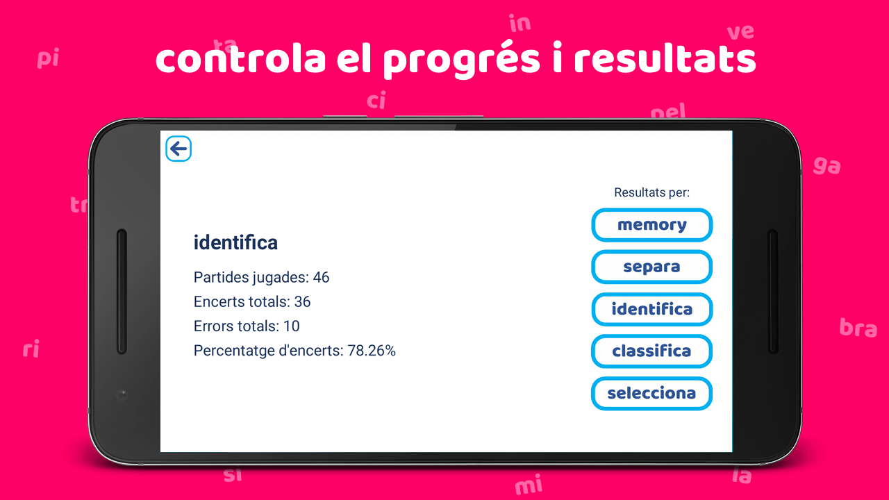 🎯Una app, cinc jocs: Tenim 5 modes de joc de dificultat creixent, que acompanyen a l’alumne des que aprèn què és una síl·laba fins que és capaç de classificar agudes, planes i esdrúixoles.