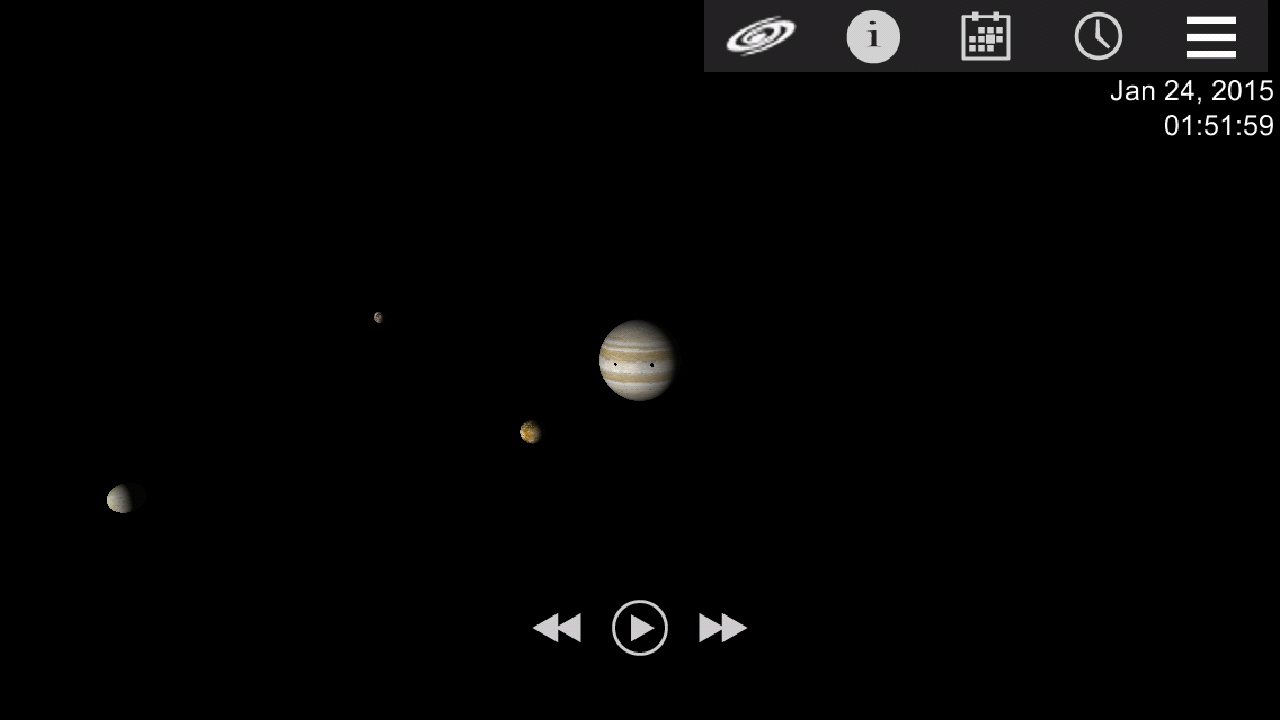 Jupiter Simulator (previously know as JoveMoons) is an astronomy app that shows the location of the four largest Jupiter moons, and the Great Red Spot.