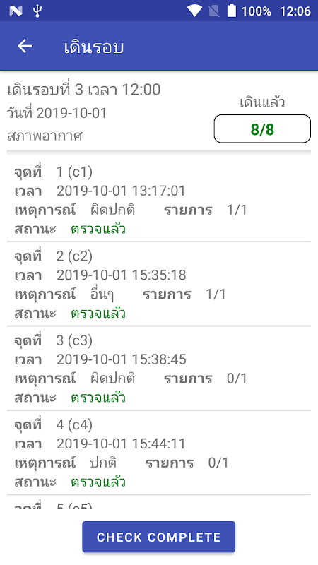保安人員使用檢查點檢查歷史的應用程序