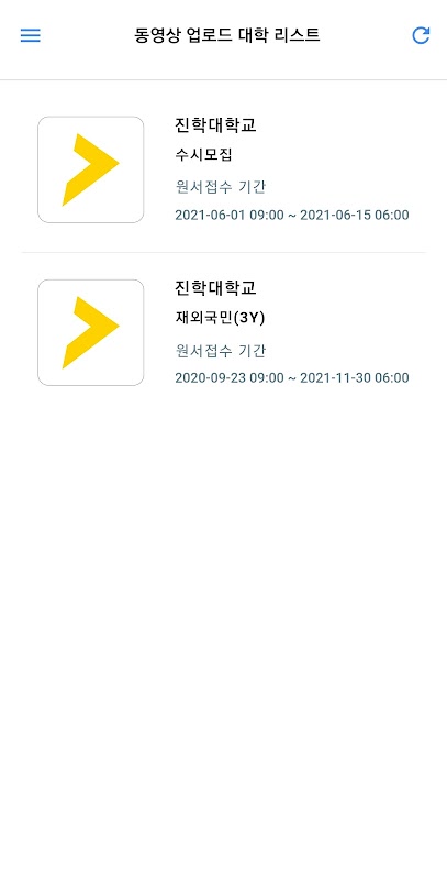 면접,실기 동영상을 대학별로 업로드 가능합니다.