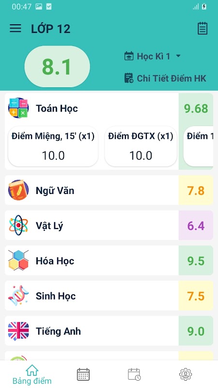 在漫長的學年中,學生將非常忘記他們的學業成績。這個應用程序將幫助父母跟踪他們孩子的學習成績,以及學生輕鬆輸入口語分數,考試成績,測試分數,以快速獲得他們的GPA成績。