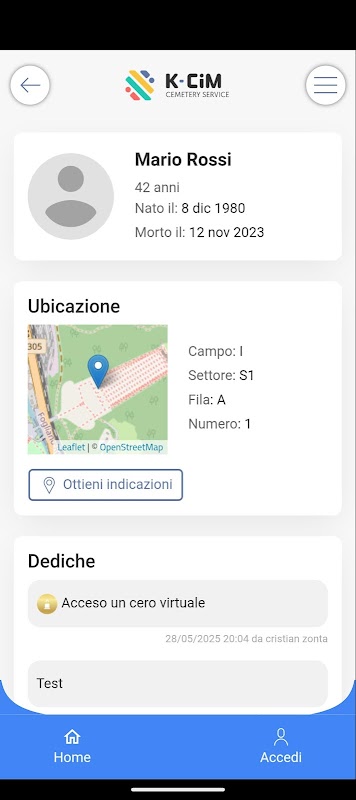 K-CiM è l’applicazione che permette ai cittadini di onorare la memoria dei propri cari in modo semplice e digitale. Ogni defunto ha una pagina personale con foto, biografia e messaggi commemorativi.