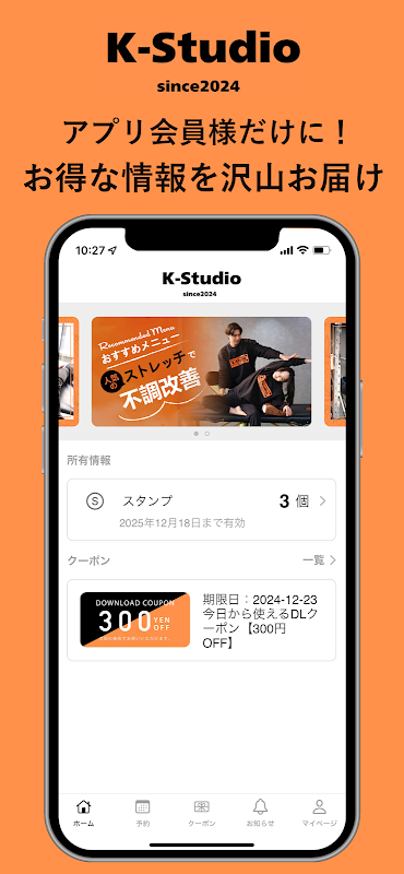 您可以透過應用程式接收[K-Studio]的最新資訊和優惠。您也可以隨時透過智慧型手機查看菜單、所需時段並進行預訂。安裝應用程序,您可以更方便地使用[K-Studio]。