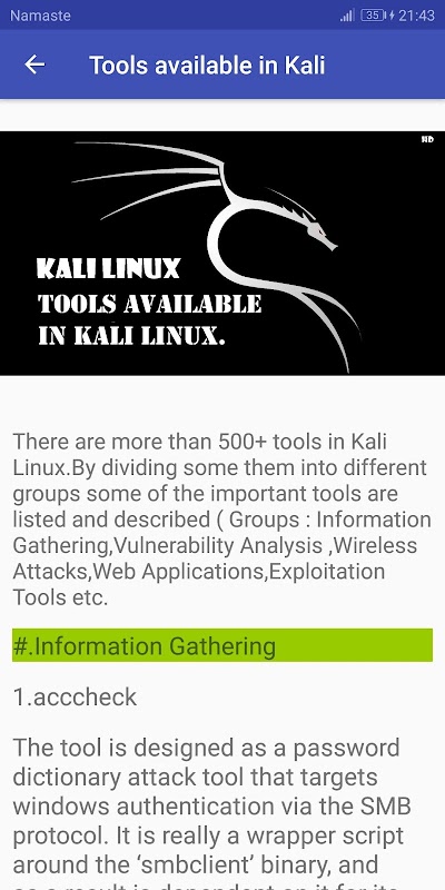 專為Kali Linux初學者設計的教程應用程序。享受!