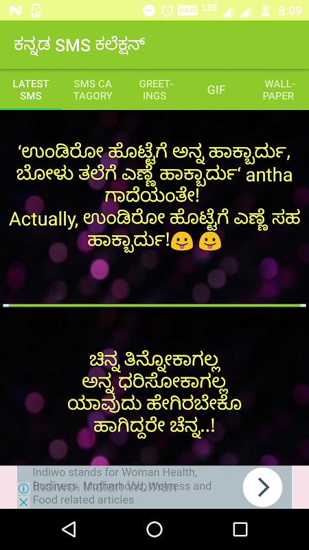 This app has largest collection of "Only Kannada Language Messages" Daily update.