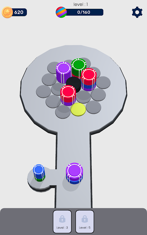 - 匹配相同顏色的圓盤來對它們進行排序。