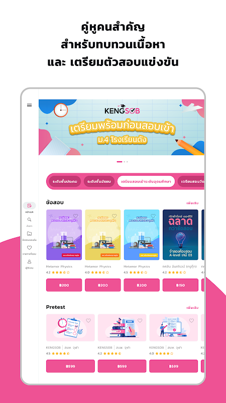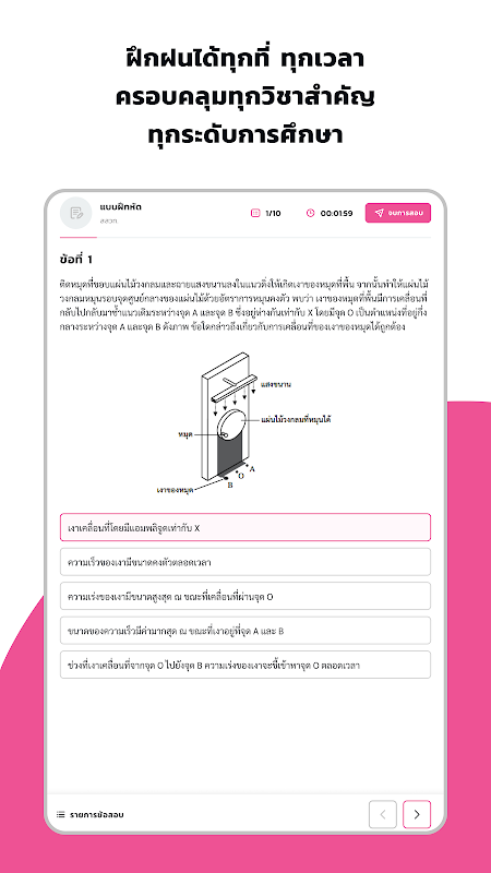 - 涵蓋所有科目的考試內容,包括數學、泰語、社會科學、英語和科學,以及語言能力測驗。