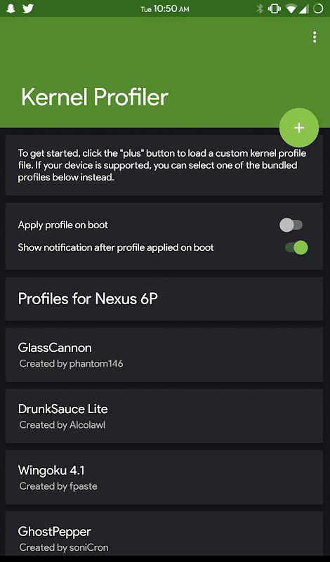 Kernel Profiler allows you to load kernel settings in the form of a profile, or install premade profiles from other users/developers.