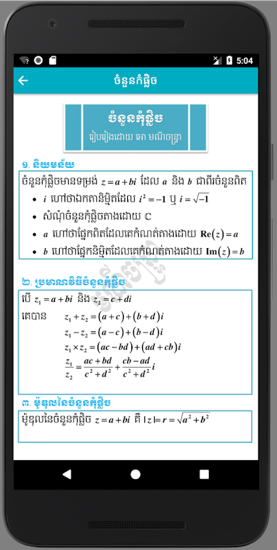 កម្មវិធីរូបមន្ដគណិតវិទ្យាជាភាសាខ្មែរដំបូងគេលើ Play Store
