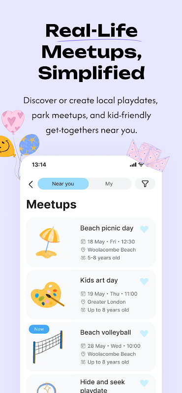 尋找附近的玩伴。安全、方便地與志同道合的家長聯繫。