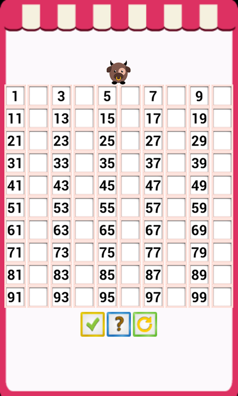 5)缺號。孩子們可以設置在百圖表丟失號碼的數目。有三個層次 - 容易,中等,難