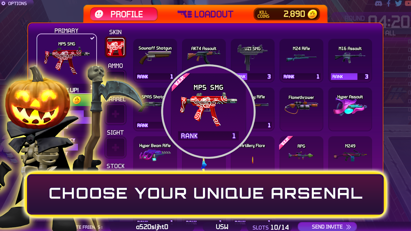 • Earn Kill Coins to unlock new Items; Including weapons, hats, heads and costumes