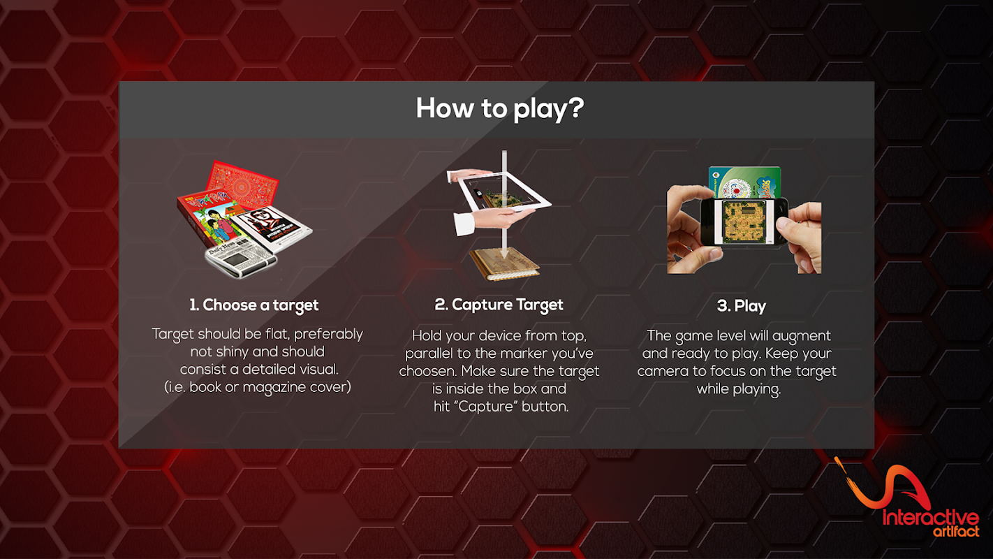 AR is a technique where a 'marker', a real-life image or object, is tracked on screen and used to add an extra dimension to the camera image, real-time!