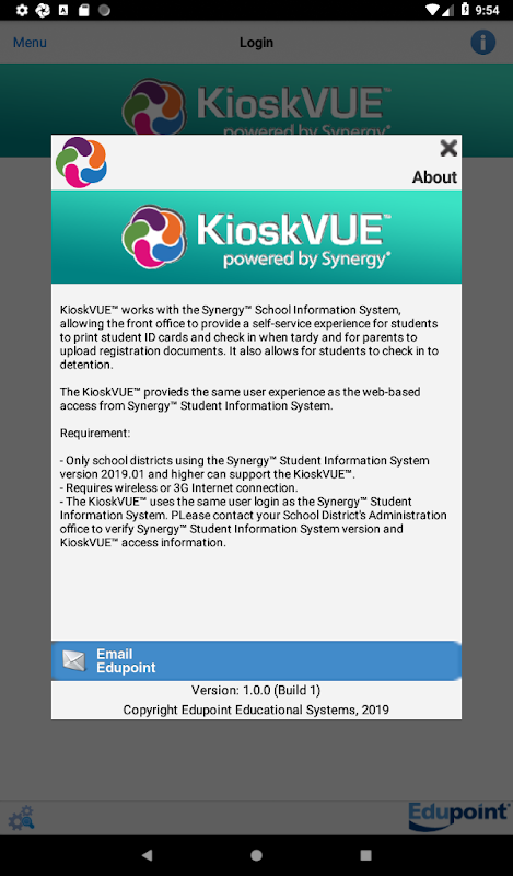 -只有使用Synergy™學生信息系統版本2019.01及更高版本的學區才能支持KioskVUE™。