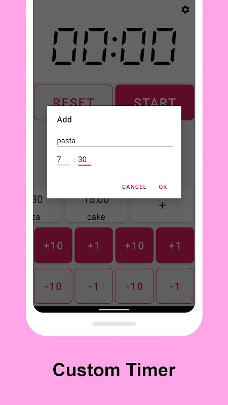 您可以保存自定義計時器並將其命名為“ 07:00(意大利麵食)”,“ 09:00(比薩餅)”。