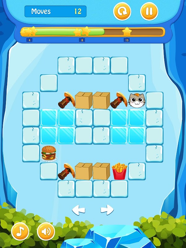 It is a funny puzzle game about a kitten! Everybody knows that cats eat more during the winter and now this cute kitten is so hungry, and it wants something to eat. Your task is to help it get the food with your mind.